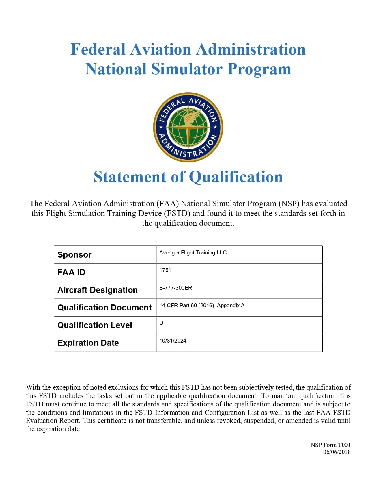 FAA Part 60 (2016), Change 2, Level D UPRT/EET